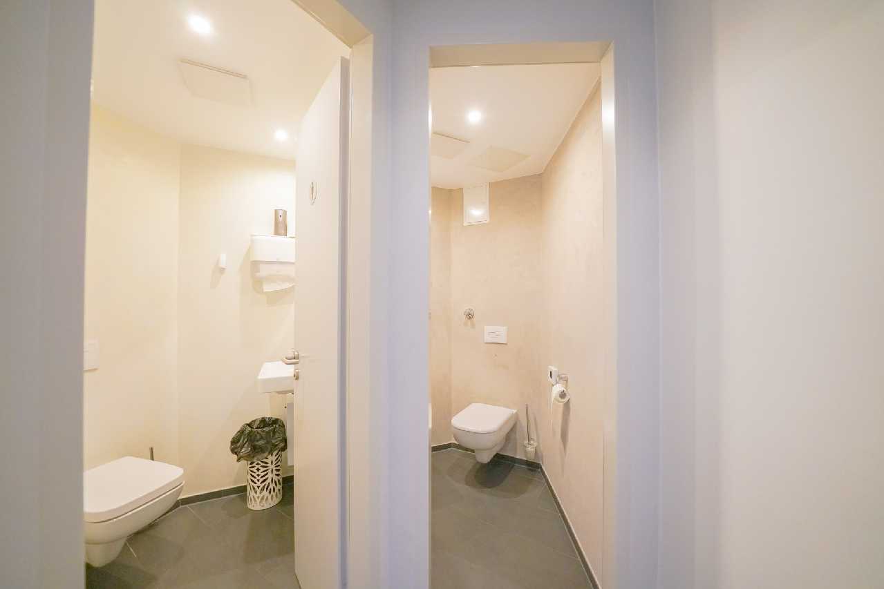Die Bürofläche ist ist derzeit unterteilt in ein Großraumbüro mit ca. sieben Arbeistplätzen, zwei Einzelbüros, einen Konferenzraum, eine Teeküche, eine Toilettenanlage sowie Abstell-, Service- und Kopieräume. Hinzu kommt ein Eingangs- und Lopbbybereich für den Empfang. Die Aufteilung ist flexibel und kann ebenso wie die gesmate Austattung den Anforderungen des neuen Mieters angepasst werden.