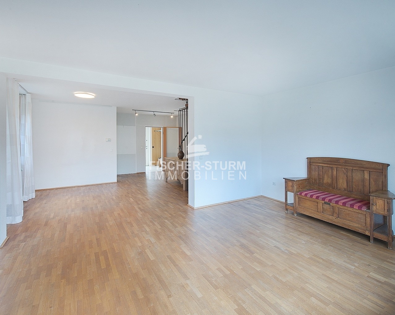 Heller Parkettboden im Wohn-Essbereich und im Elternschlafzimmer sowie die großen Fensterflächen sorgen für Helligkeit und ein angenehmes Wohngefühl. Die Kinderzimmer sind mit Teppichböden ausgestattet. Decken und Wände sind weiß gestrichen, Bad und Gäste-WC sind modern und hell gefliest.