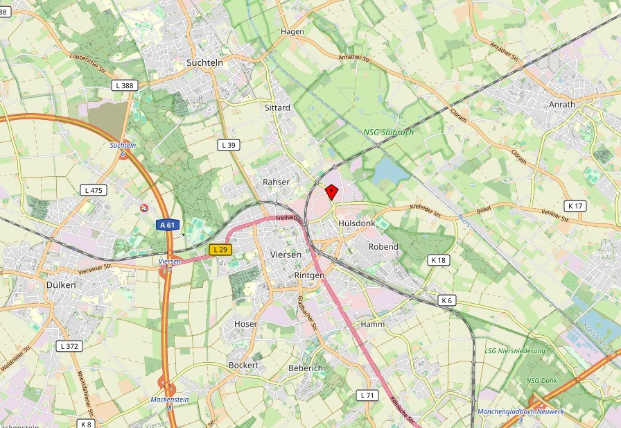 Ideale Verkehrsanbindungen zur Autobahn A 61 Richtung Mönchengladbach und Venlo bzw. die direkte Anbindung über die B 7 Richtung Mönchengladbach sollen nicht unerwähnt bleiben. Des Weiteren haben Sie eine gute Anbindung an die A 52 Richtung Düsseldorf bzw. Roermond. Darüber hinaus verfügt Viersen über einen Bahnhof, sodass die Bereiche Ruhrgebiet, Düsseldorf, Köln, Aachen sowie die Niederlande unmittelbar erreicht werden können