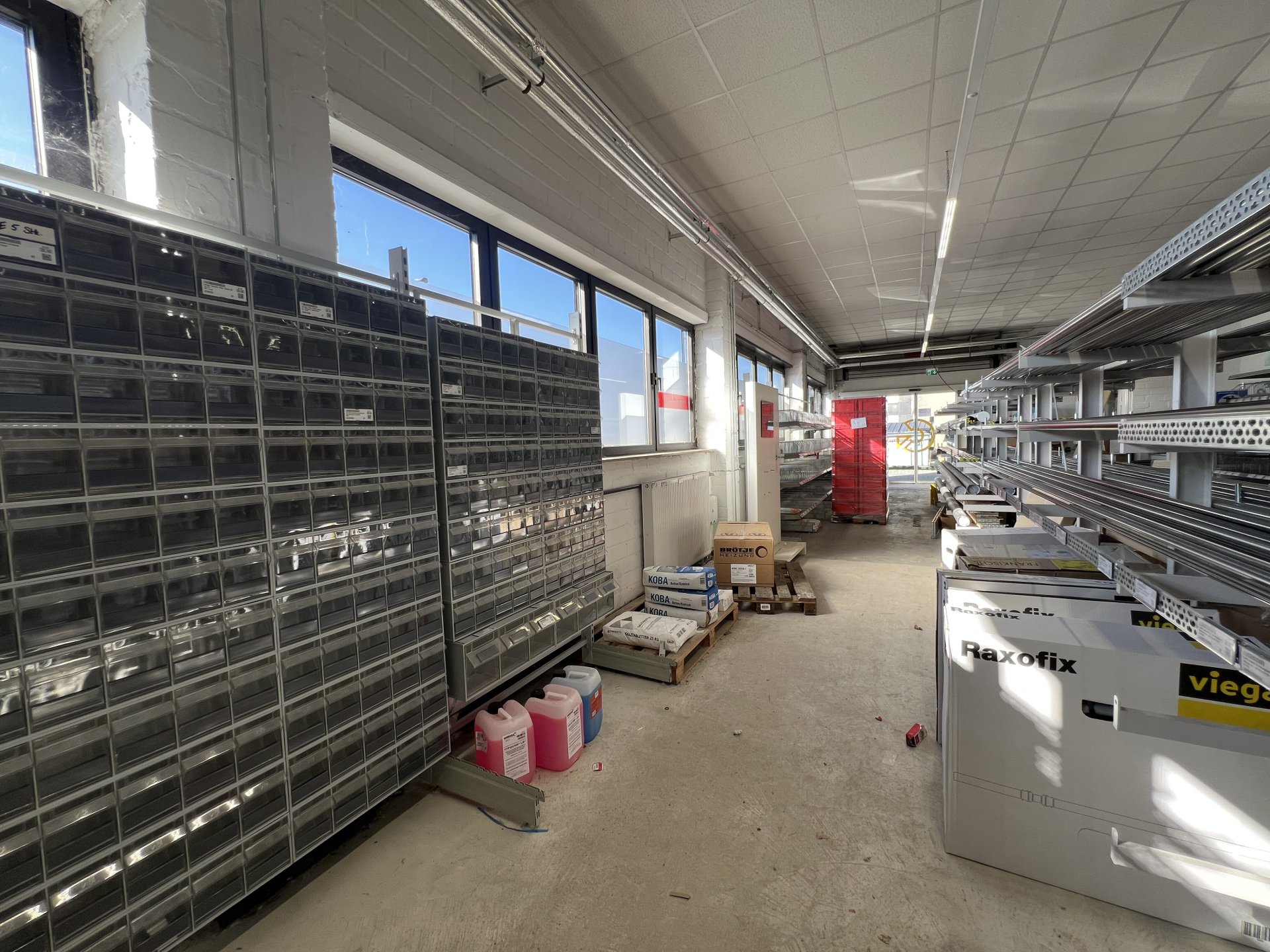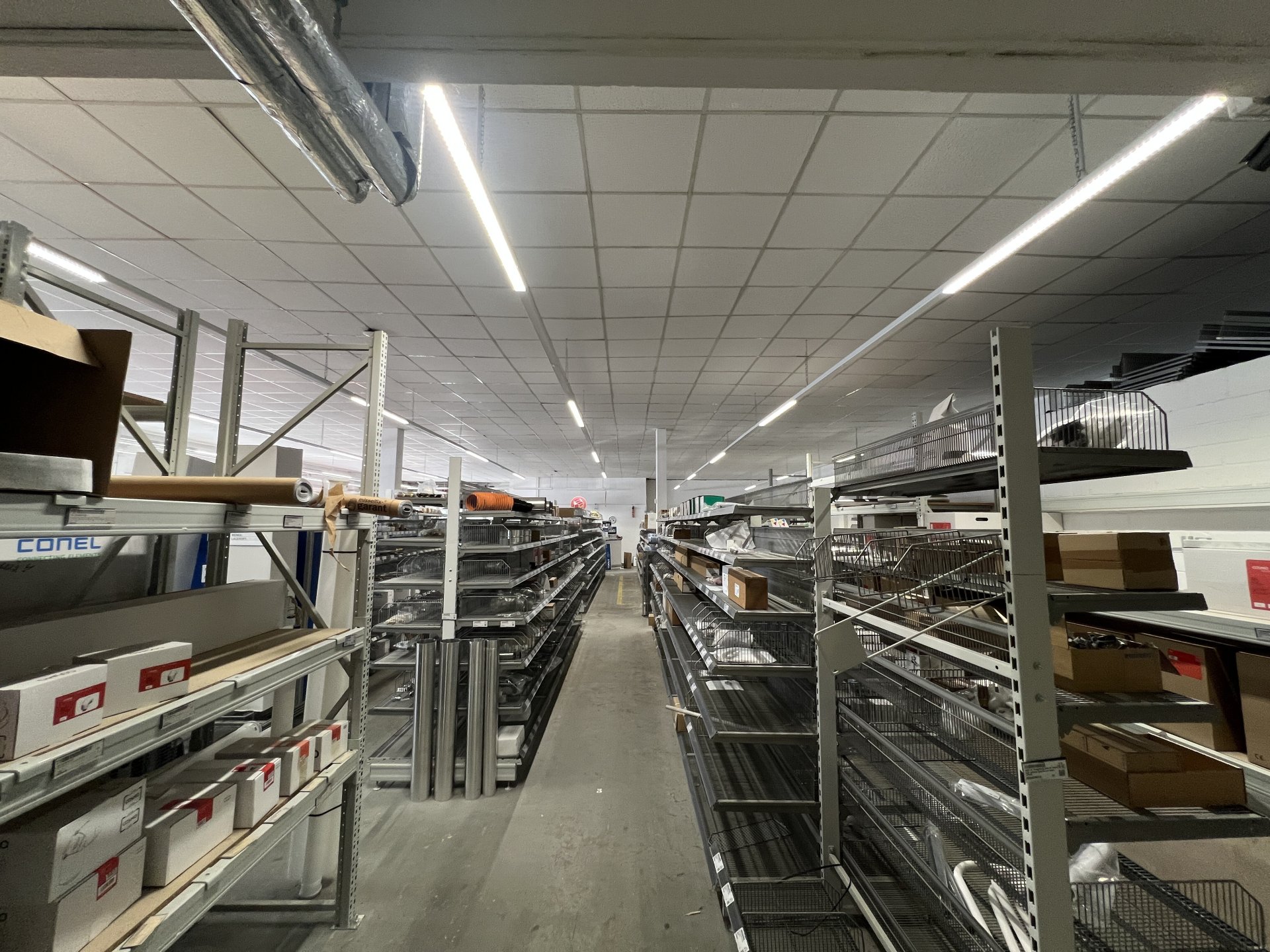 modernen LED Beleuchtung, sorgen für eine ideale Belichtung der Mietfläche. Vor der Immobilie stehen Parkplätze für Mitarbeiter und Kunden