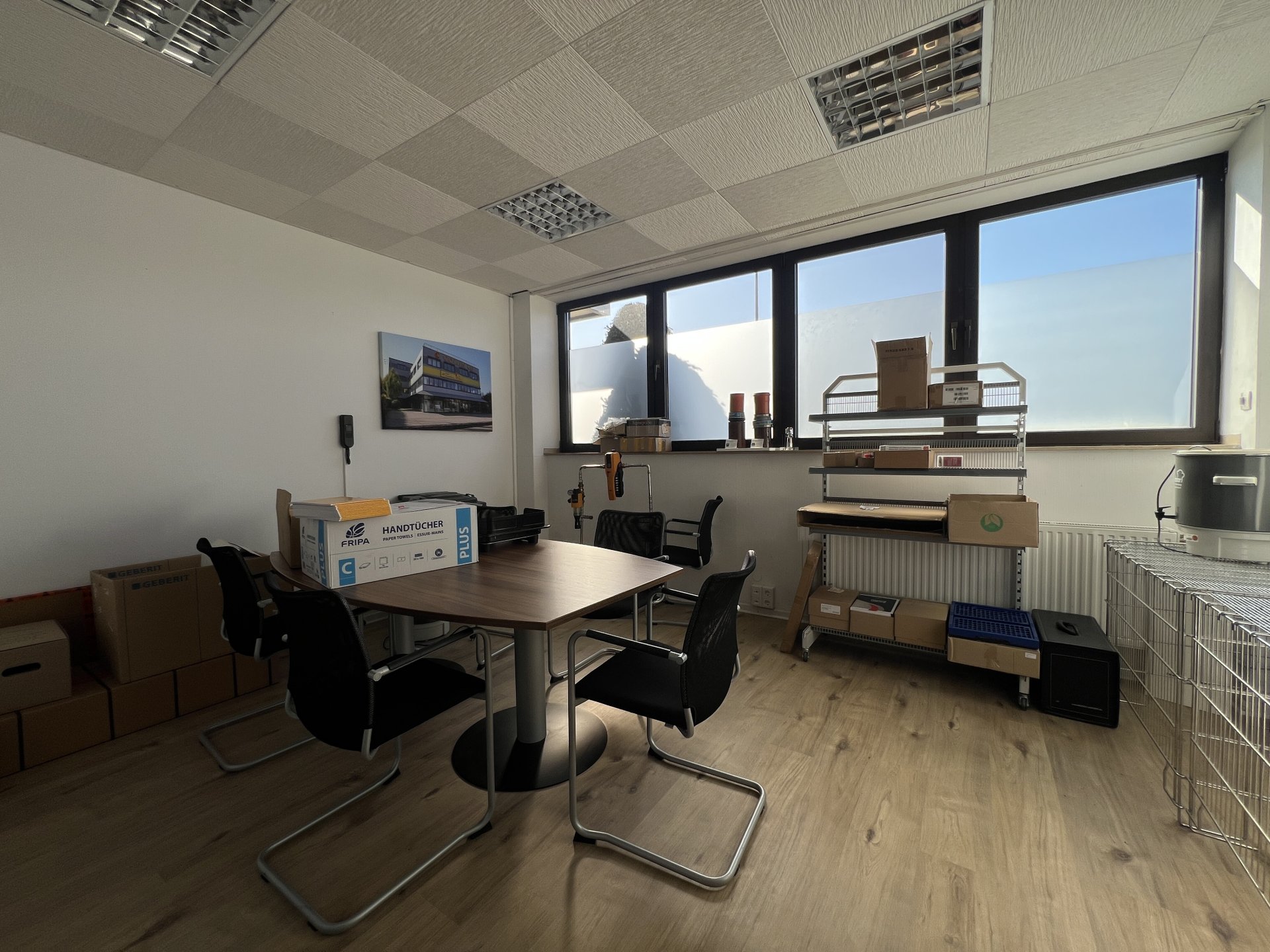 sowie ein Anlieferbereich zur Verfügung. Eine Anlieferung erfolgt durch die vorhandene Glas-Schiebetür.
