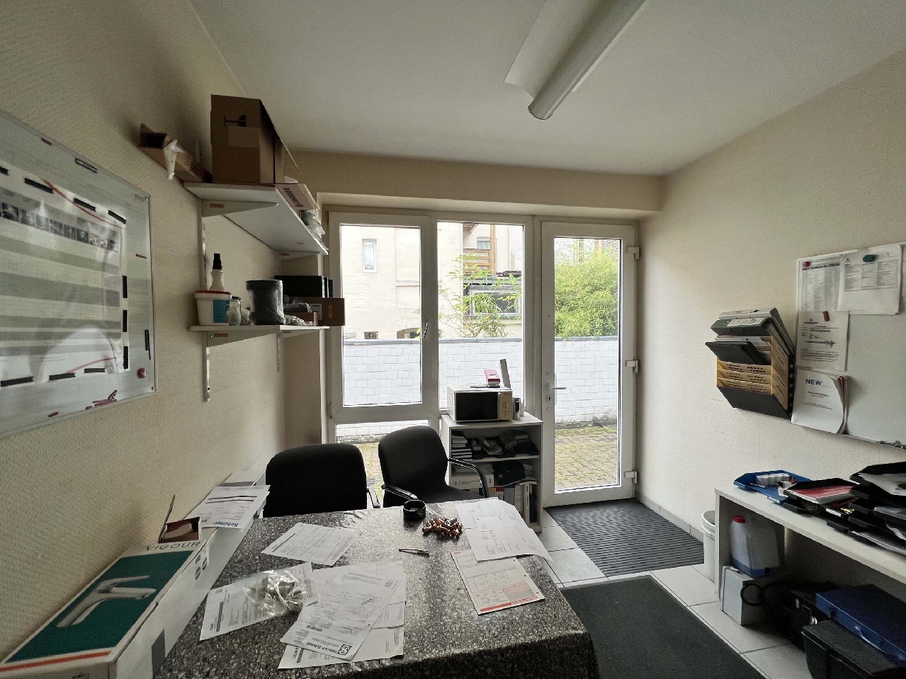 Direkt hinter dem Büro und im Keller befinden sich eine Werkstatt/ Lagerflächen sowie PKW-Stellplätze, die über eine Toreinfahrt zu erreichen sind. Insgesamt stehen ein Empfangsbüro, ein Großraumbüro, ein Besucher-WC, ein Sozialraum sowie ein Mitarbeiter-WC zur Verfügung. -