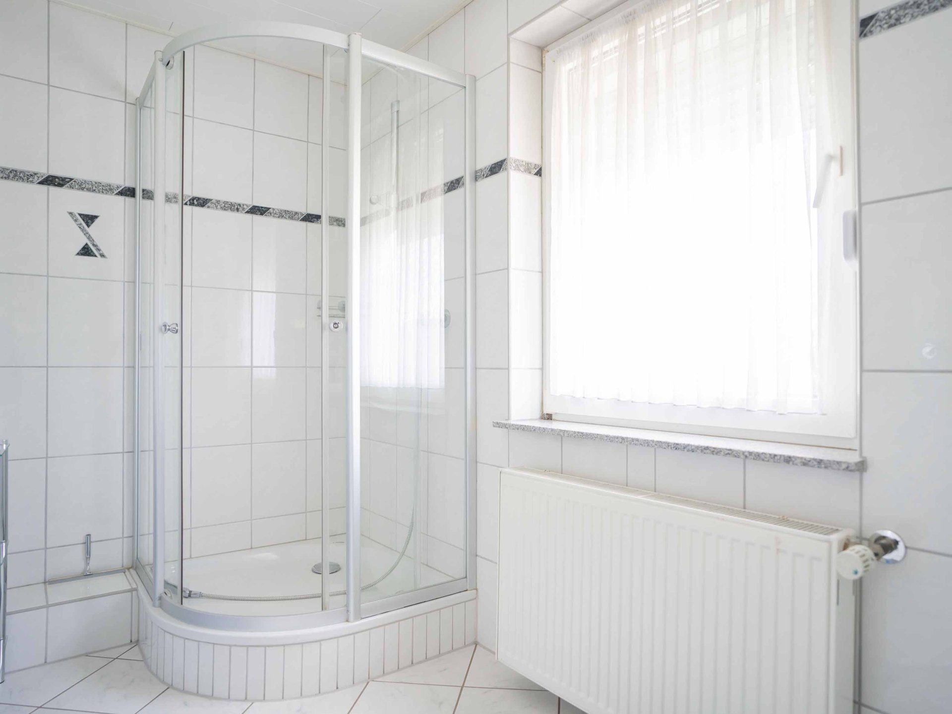 Im Obergeschoss finden Sie ein weiteres Duschbad mit Fenster, einen Durchgangsraum sowie ein großes Schlafzimmer mit Ankleideraum vor.