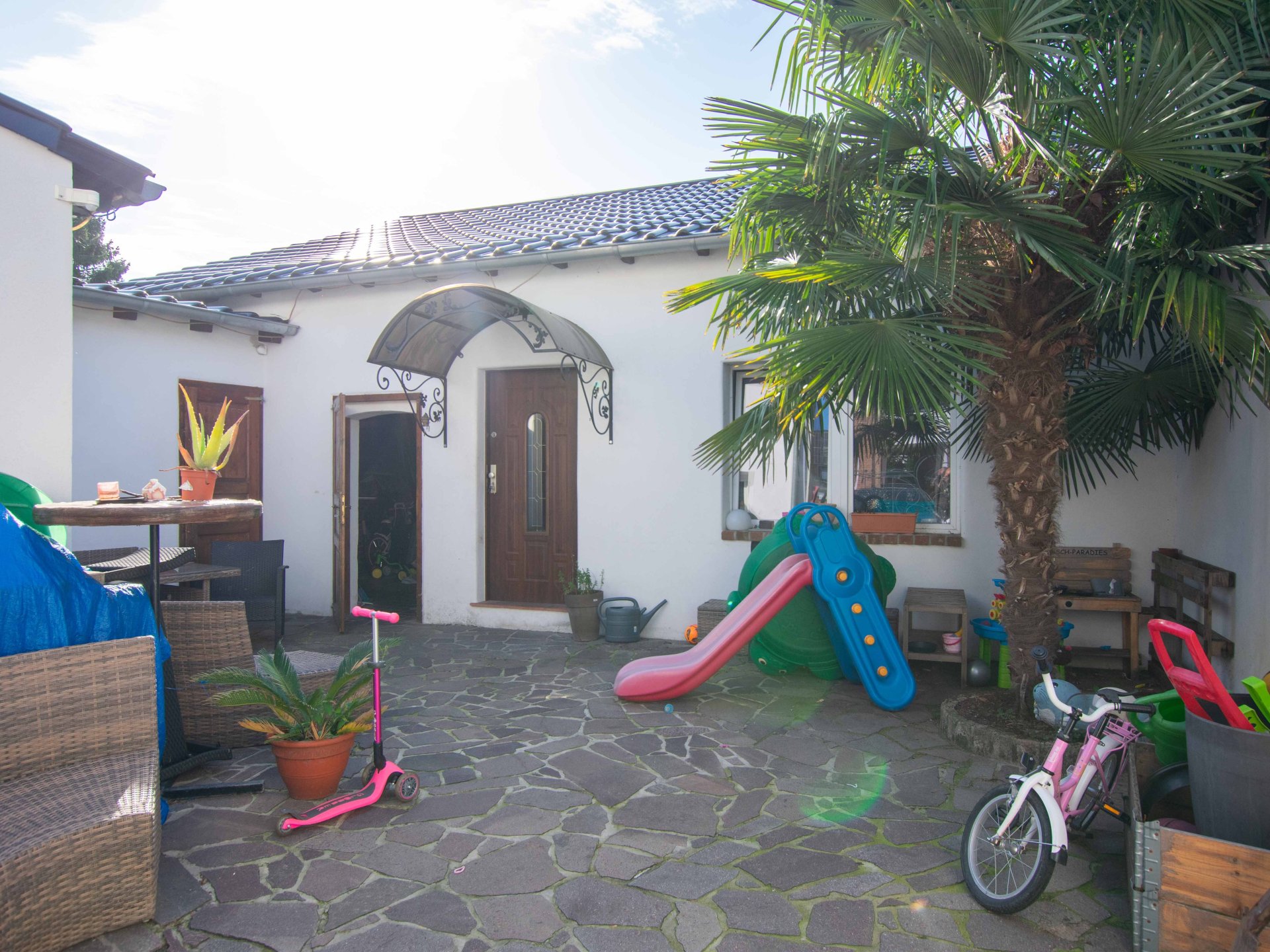 Aus dem schön angelegten Innenhof gelangen Sie in die ebenerdige Waschküche, in einen Abstell-, und Lagerbereich sowie in den Bungalow.