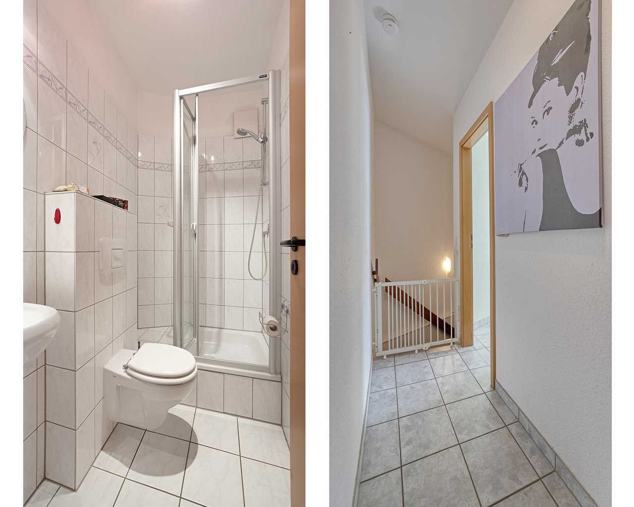 – Raufasertapete / Glasfasertapete, teils farbig gestrichenBäder und Sanitär